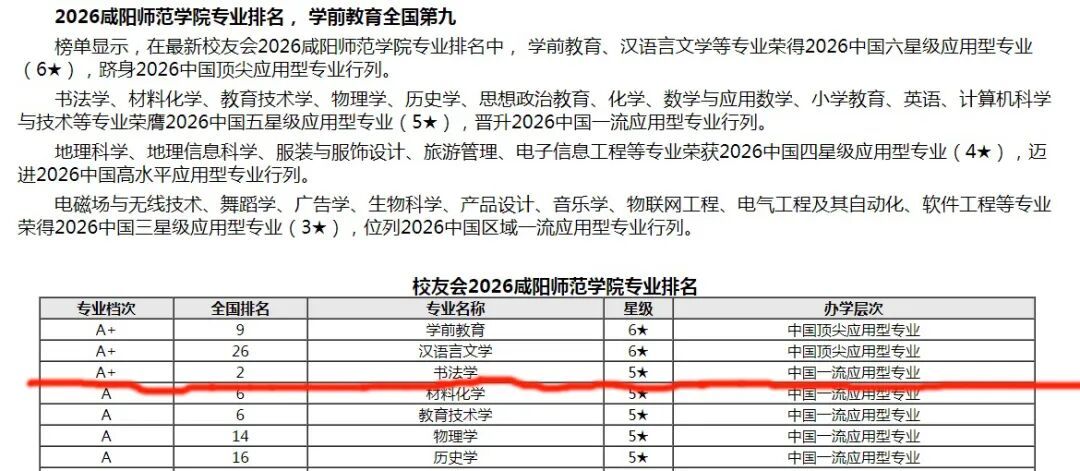 日前,艾瑞深中国校友会网2026 年中国大学一流专业排名正式发布。咸阳师范学院于右任书法学院书法学专业再次荣膺应用型全国第二。自 2022 年起,书法学专业连续五年位居全国应用型院校第二名,获评 “中国一流应用型专业(5★,A+)”,充分彰显了我校书法学专业突出的办学优势与鲜明特色。